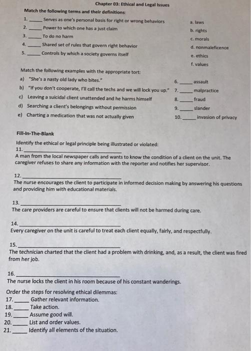 Solved A Laws Chapter 03 Ethical And Legal Issues Match Chegg Com
